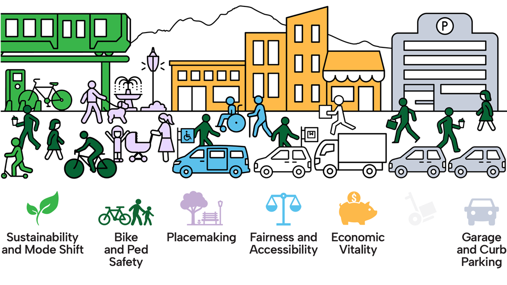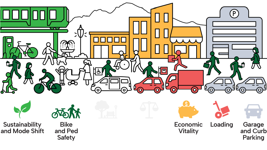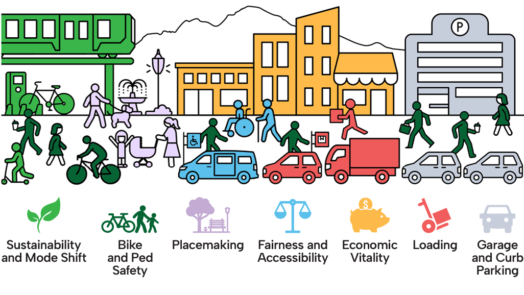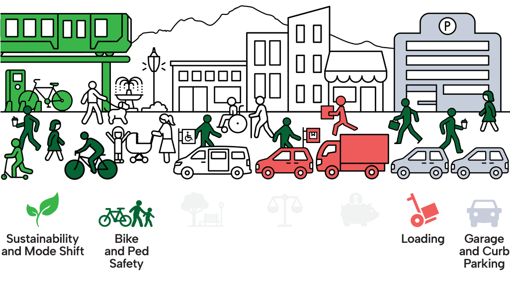 Rather than treating the curb as a set of regulations to adjust block by block, the City began to see it as a way to advance adopted goals. That meant bringing together: